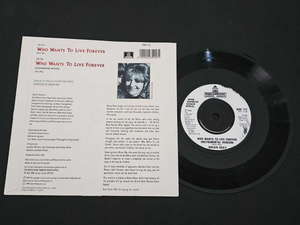 7" Vinyl single Brian May Who wants to live forever (UK) Silver mispress labels (Queen)