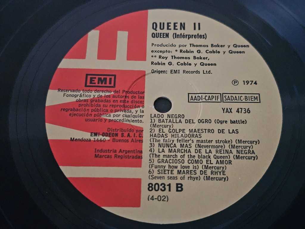 12" Vinyl album Queen 2 (Argentina)