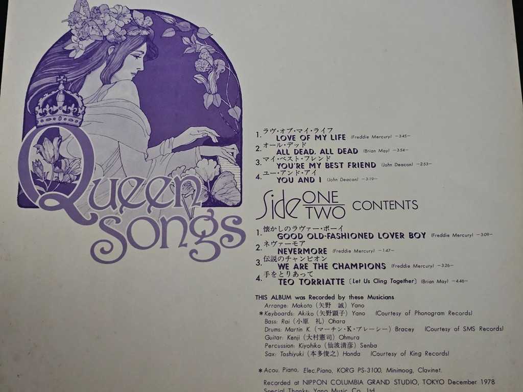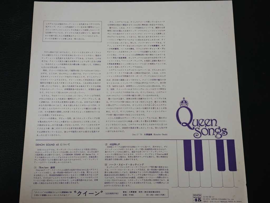 12" Vinyl album Queen Songs (Japan) Denon sound 45