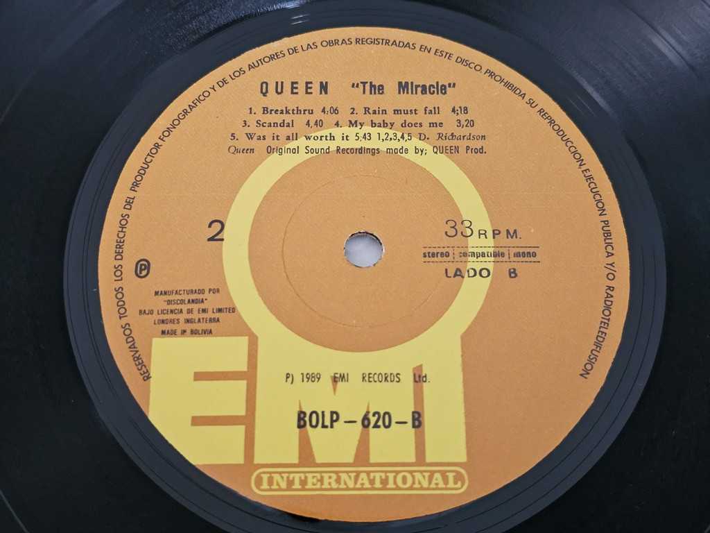 12" Vinyl album Queen The miracle (Bolivia)