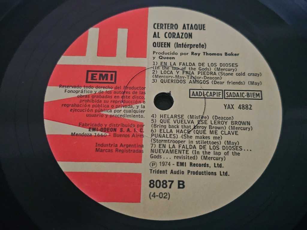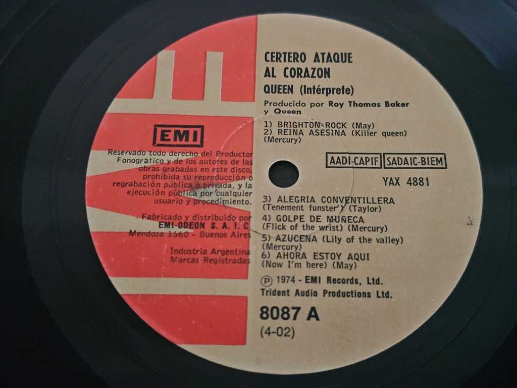 12" Vinyl album Queen Sheer heart attack (Argentina)