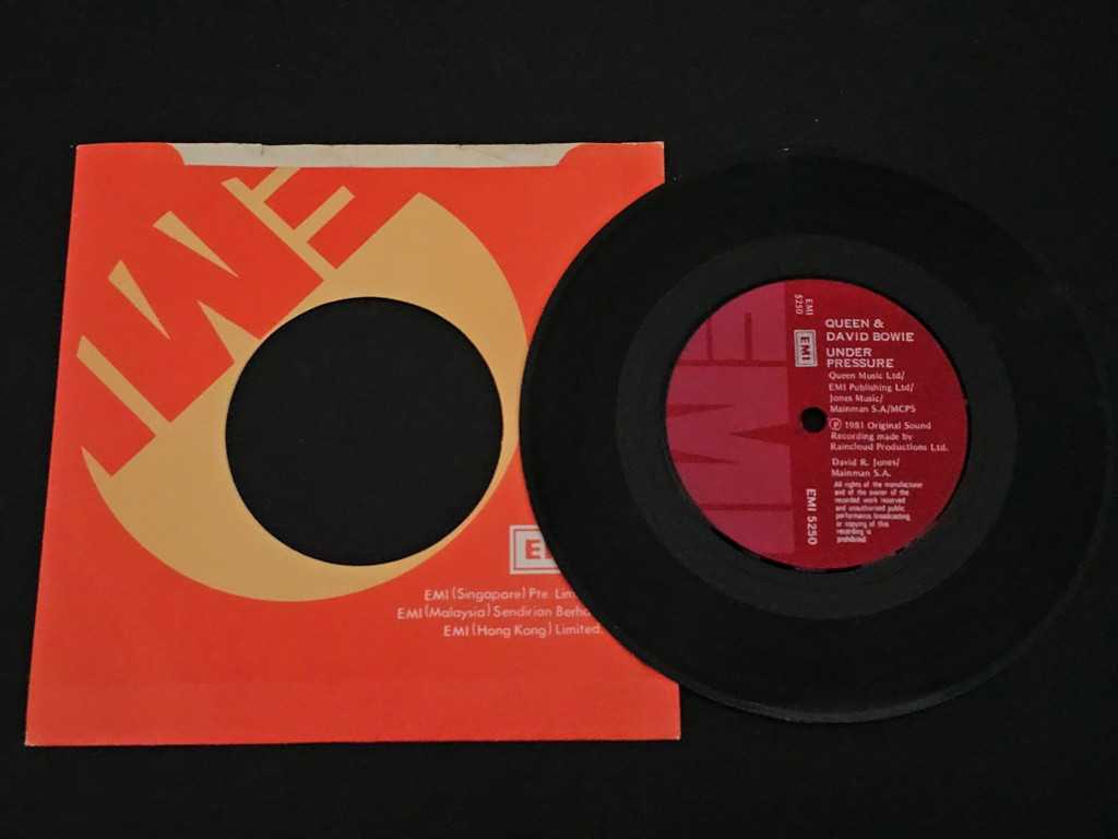 7" Vinyl single Queen and David Bowie Under pressure (Hong Kong) Red labels